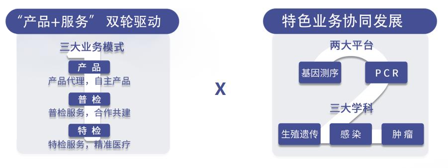 涵盖生殖遗传、肿瘤、感染领域检测服务,并参与相关普检服务。